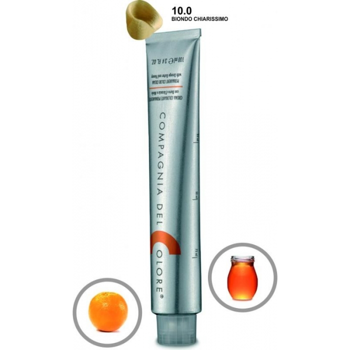 Compagnia Del Colore je Krémová permanentná farba s minimálnym obsahom amoniaku a čistými mikropigmentami, ktoré zaručujú prienik farby do hĺbky, chráni vlasy a zachováva ich štruktúru. Tieto farby tiež obsahujú pomarančové maslo, ktoré funguje ako antioxidant, chráni vlasy pred UV žiarením, smogom, spomaľuje starnutie a med, ktorý vyživuje a hydratuje pokožku, dodáva vlasom pružnosť, objem a žiarivý lesk.